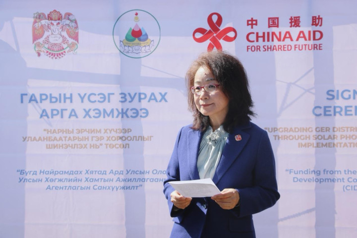 本次签约仪式在乌兰巴托居民楚伦呼家的蒙古包中举行。据悉,联合国开发计划署利用太阳能光伏系统改造乌兰巴托蒙古包区项目由中国全球发展和南南合作基金提供支持。项目包括太阳能光伏板、储能系统及其相关的培训、推广等。改造项目完成后,将为乌兰巴托蒙古包区居民提供清洁能源,助力该区域节能减排。